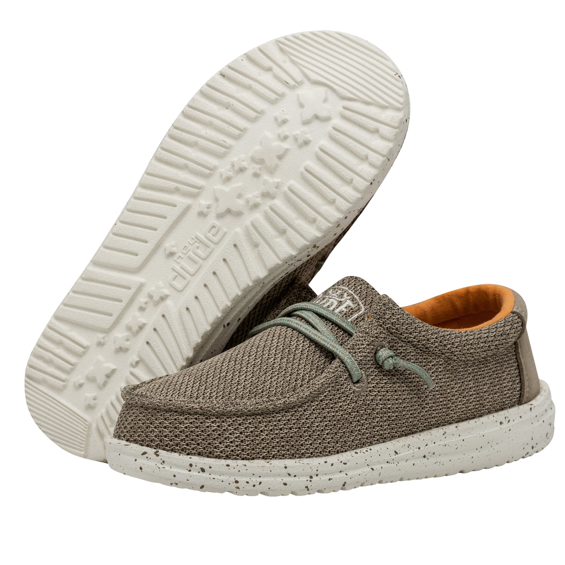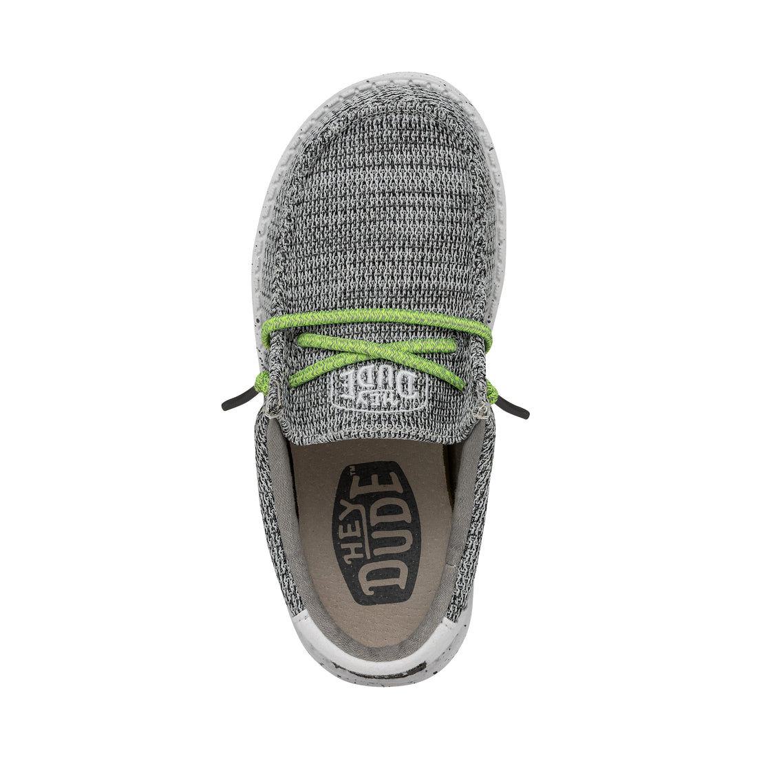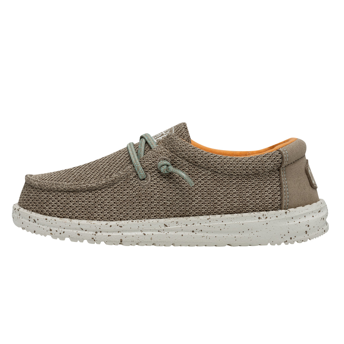 WALLY YOUTH SOX es nuestro mocasín clásico para los pequeños de la casa. Su parte superior tejida de poliéster tiene una textura de punto y está cosida con una máquina especial de tres agujas que hace puntadas de triple refuerzo para una mayor durabilidad. Además, cuenta con cordones elásticos que hacen que los zapatos sean fáciles de poner y quitar. Sus principales características son:
