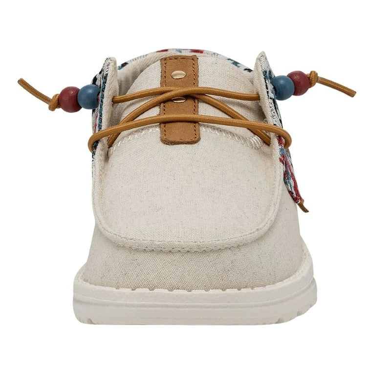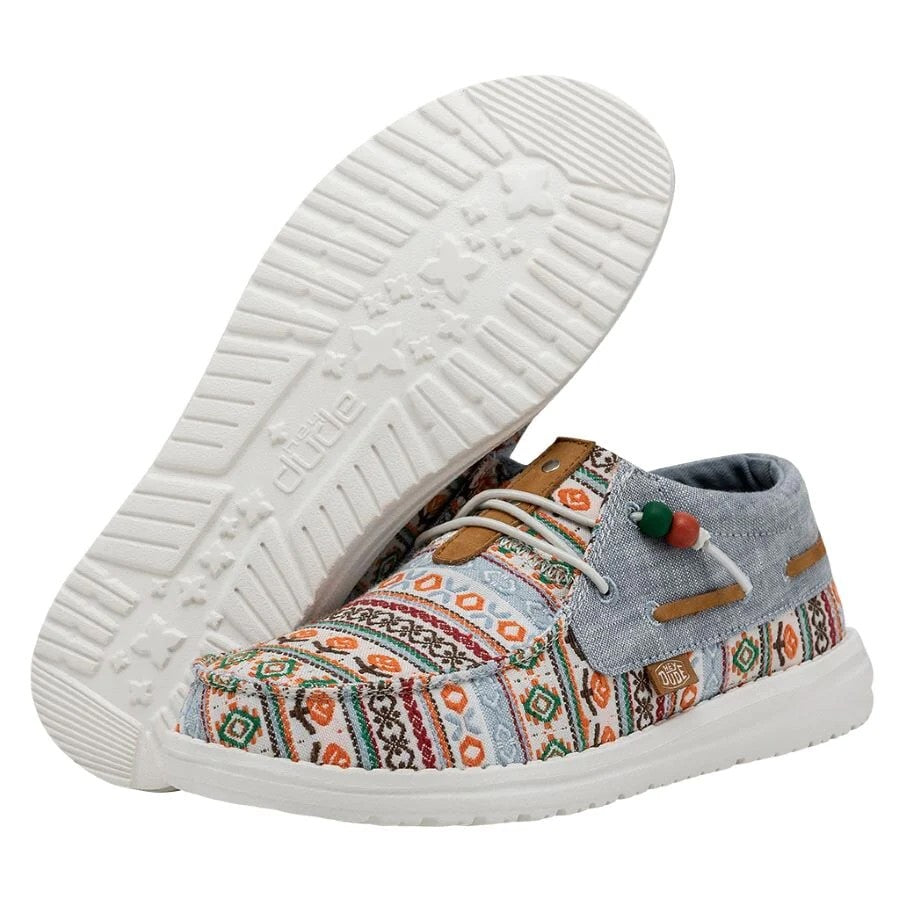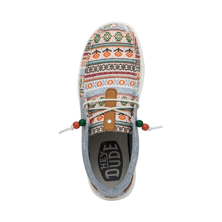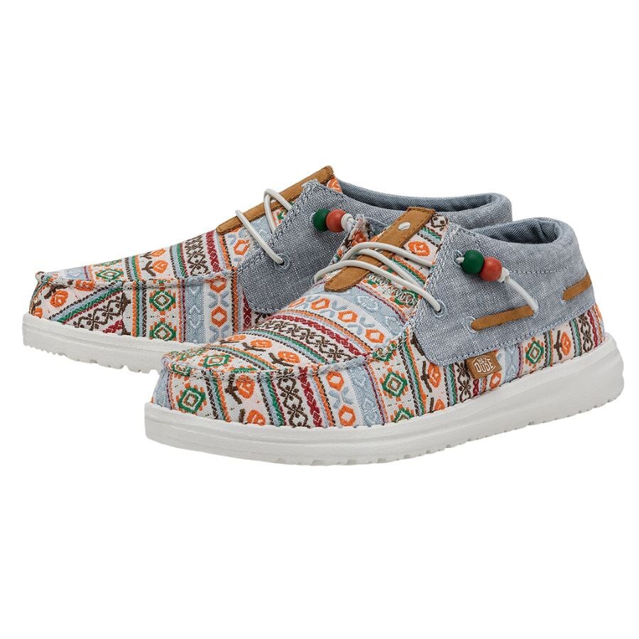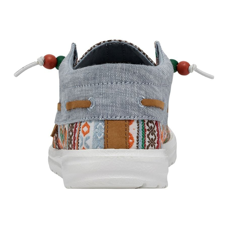 Las Ellie Festival forman parte de la gran familia Wendy y están confeccionadas con una parte superior textil de algodón Chambray ligera y transpirable con un original print. Su tejido brillante y estampado y los cordones con cuentas aportan un estilo fresco y renovado a las conocidas Wendy. Sus principales características son: