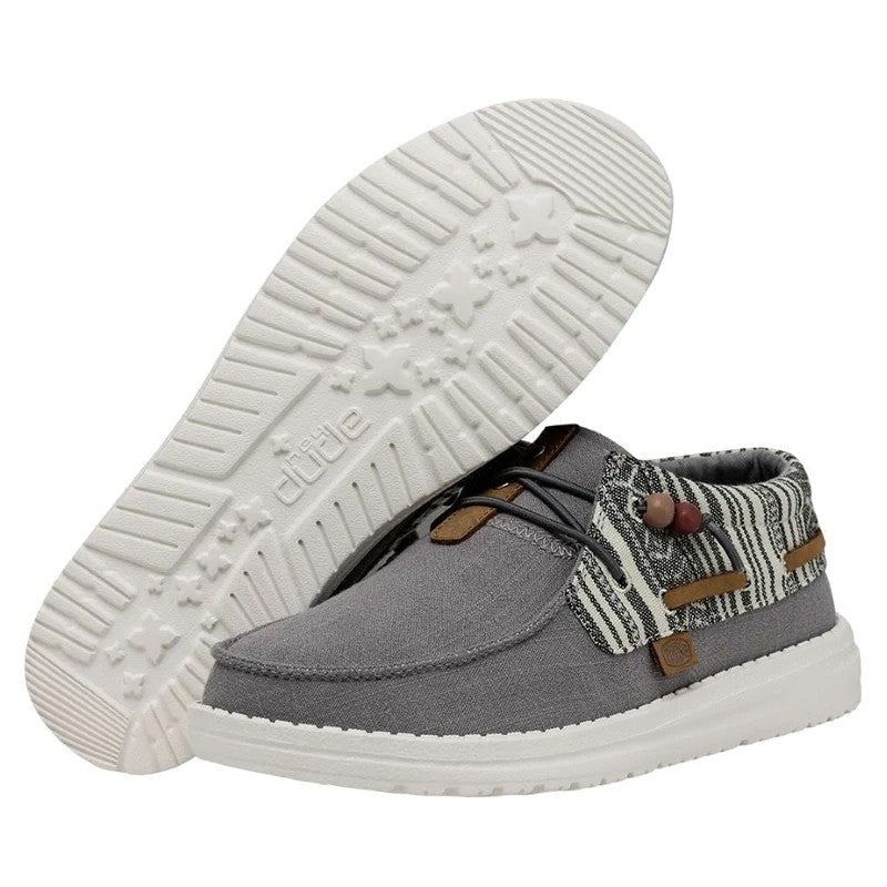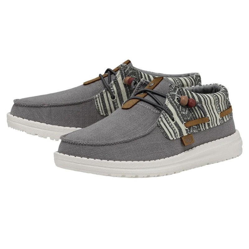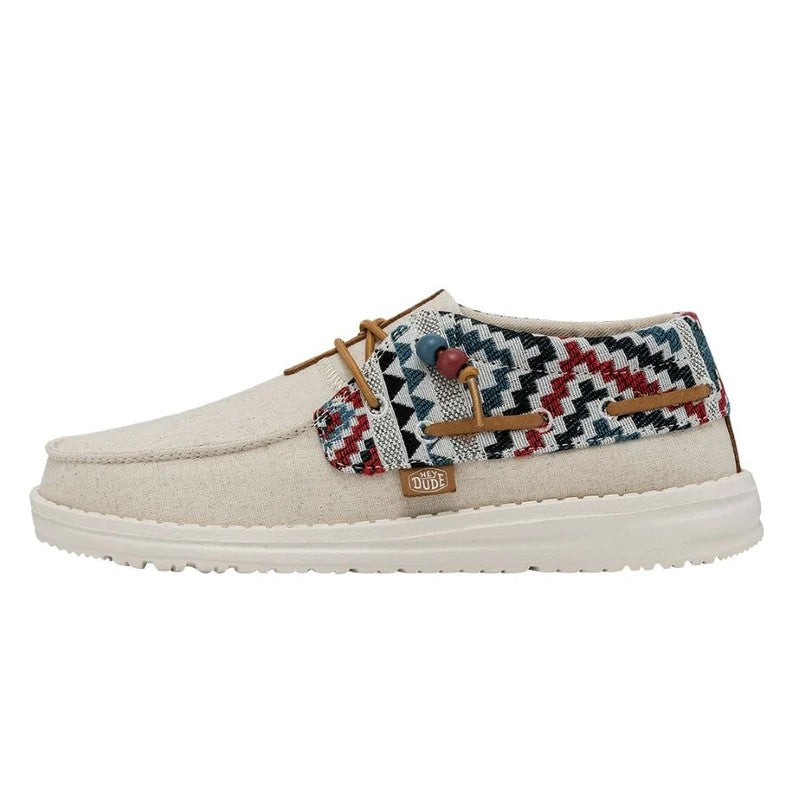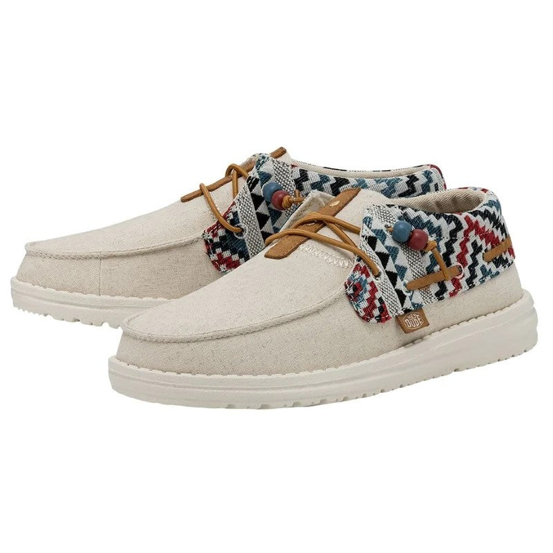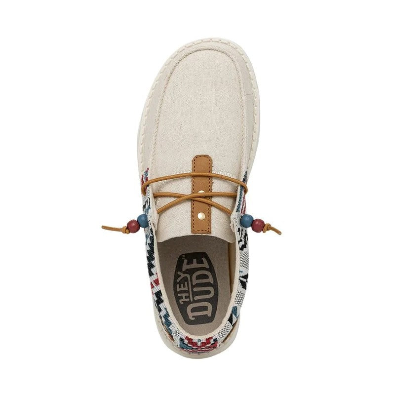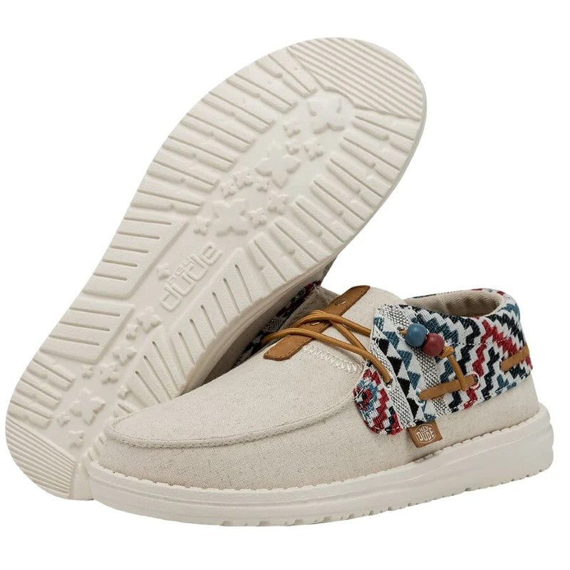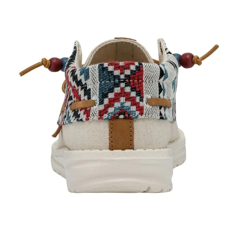 Las Ellie Festival forman parte de la gran familia Wendy y están confeccionadas con una parte superior textil de algodón Chambray ligera y transpirable con un original print. Su tejido brillante y estampado y los cordones con cuentas aportan un estilo fresco y renovado a las conocidas Wendy. Sus principales características son: