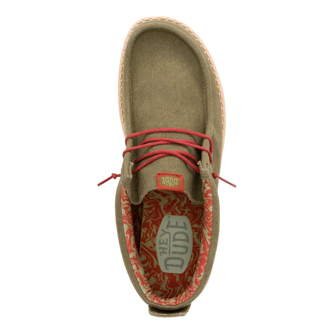 WALLY MID WAXED CANVAS son unos botines con cordones de lona tratados con un spray repelente al agua y con un cuello acolchado para mayor estilo y comodidad. Nuestra plantilla de espuma extraíble ofrece un extra de amortiguación. Con tiradores en el talón para ponerlas y quitarlas fácilmente, estas zapatillas son perfectas para cualquier ocasión otoñal. Sus principales características son: