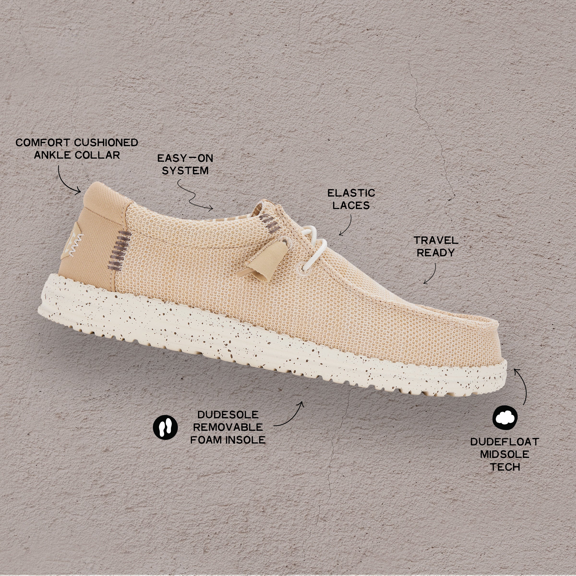 Muévete con libertad con Wally Stretch. Con la construcción clásica de HEYDUDE™, parte superior de malla elástica y cordones elásticos, estas zapatillas combinan facilidad para calzarlas, comodidad y ligereza de pies a cabeza. Lúcelo con un estilo que se adapta perfectamente a tu pie.