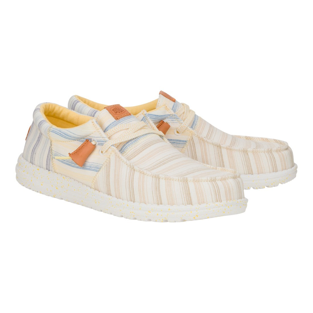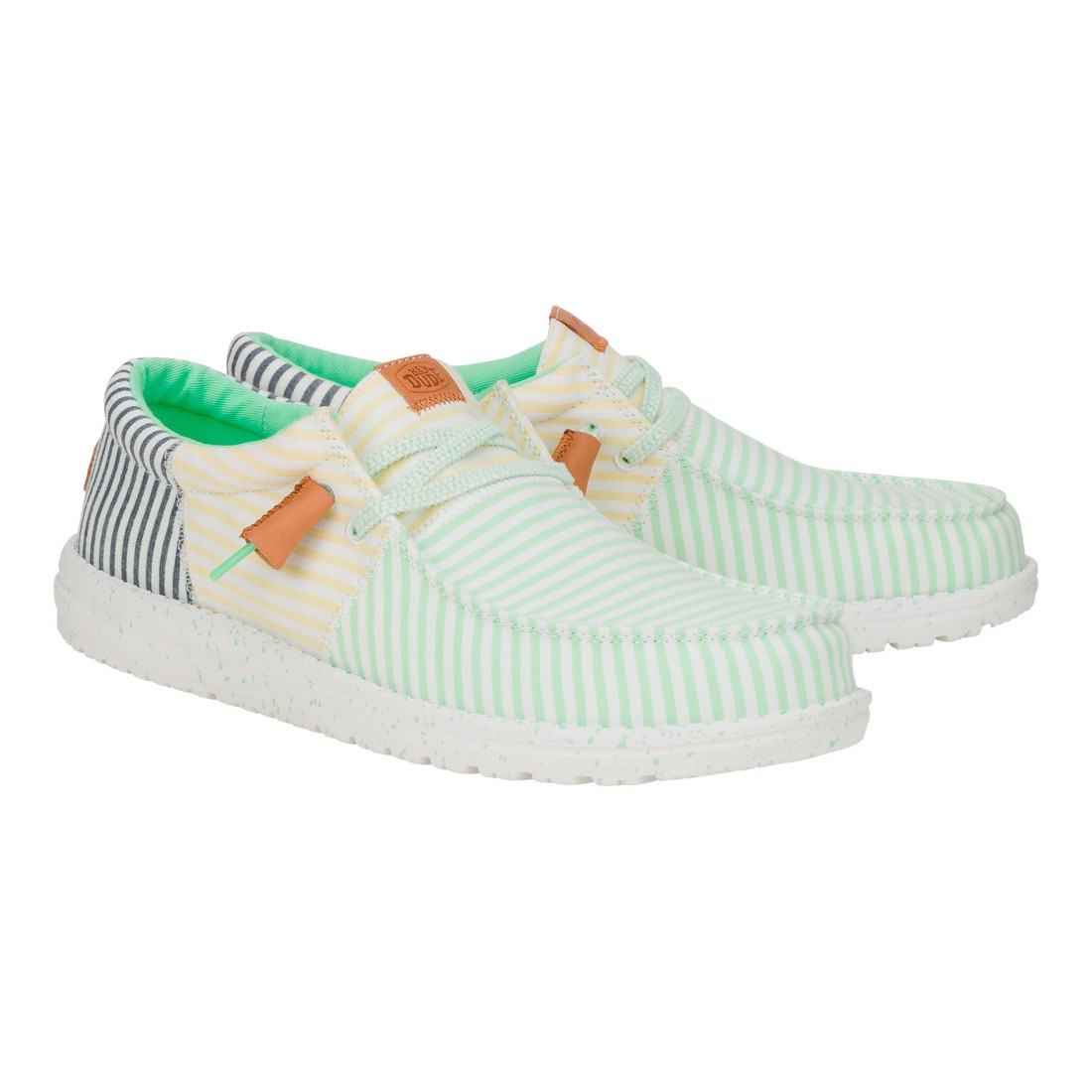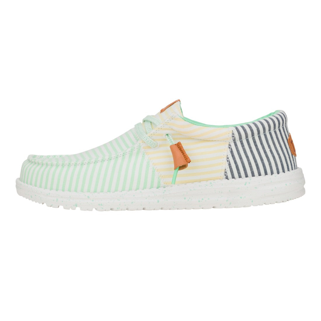 Los WALLY TRI NU PREP son unos zapatos ideales para el verano que se convertirán en el sueño de los amantes del 'Seersucker' (tejido de algodón vaporoso, ligero y supersuave), presentando una mezcla audaz de rayas y estampados preppy para dar lugar a un un look muy divertido. Los detalles de cuero añaden un toque de elegancia, mientras que el sistema Easy-On y la plantilla de espuma extraíble te mantienen en el paraíso de la comodidad.