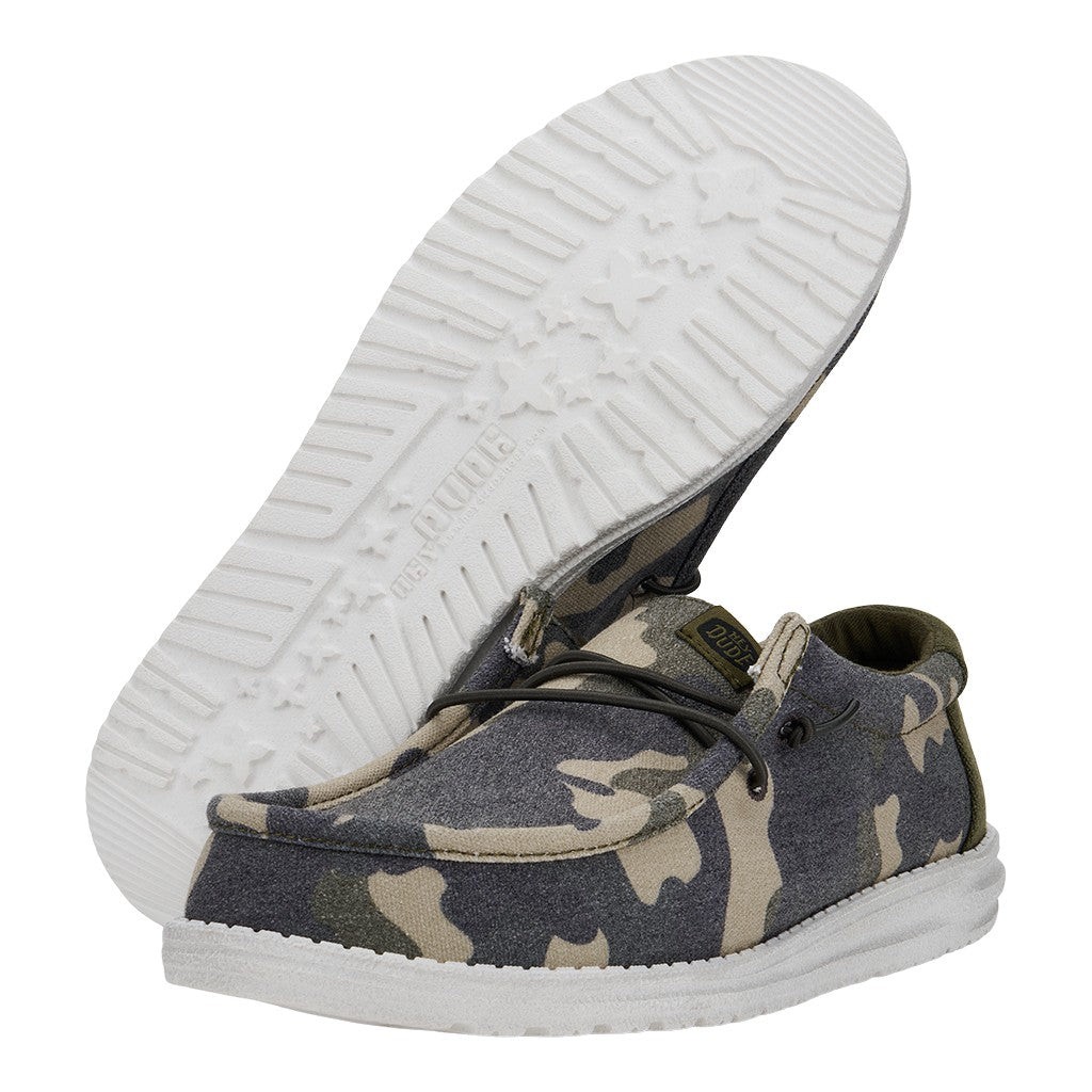 WALLY WASHED CAMO es un zapato de cordones para hombre cómodo y con un original estampado de camuflaje que combina cuatro tonalidades de color. Un diseño elaborado tejido perfecto para explorar mundo. Sus principales características son: