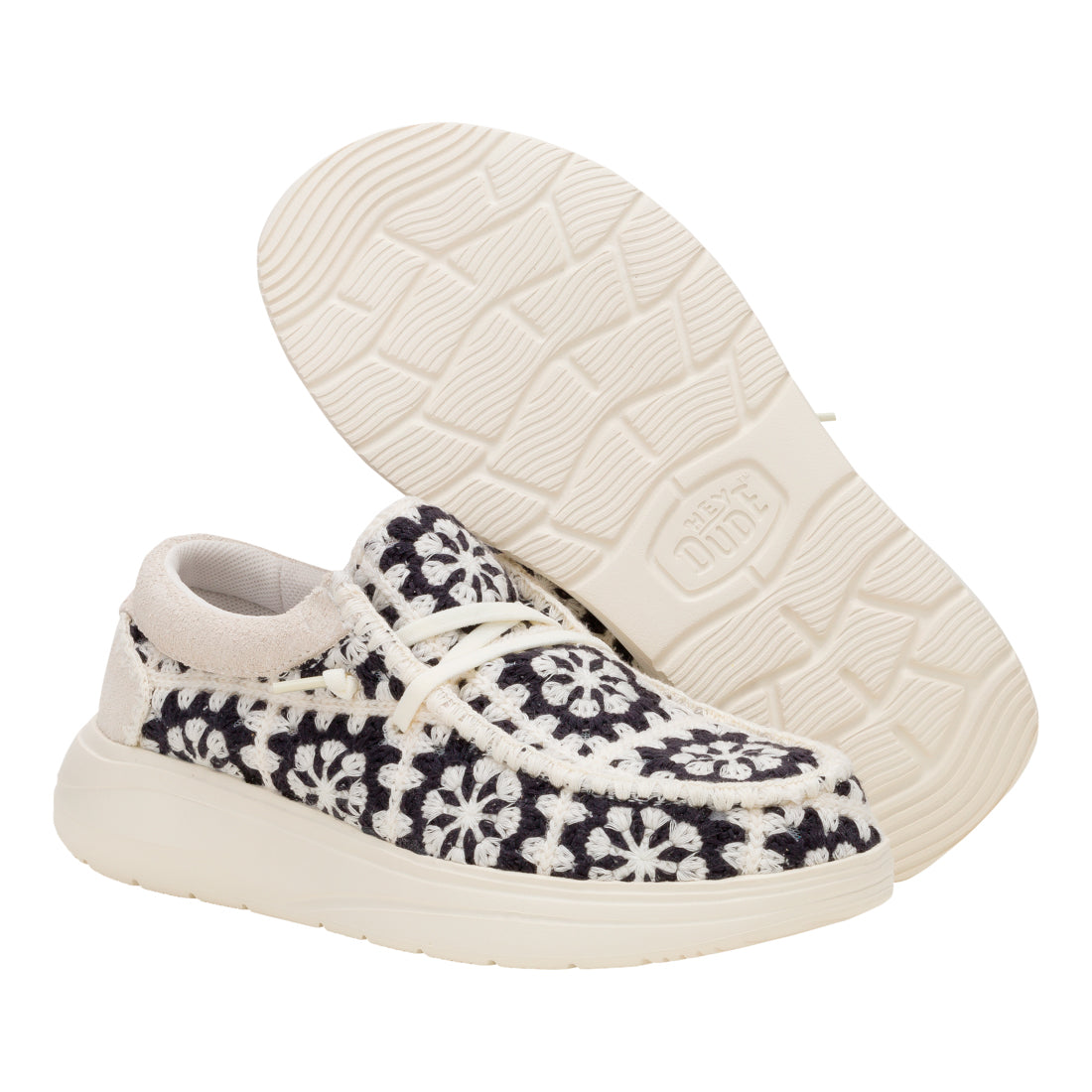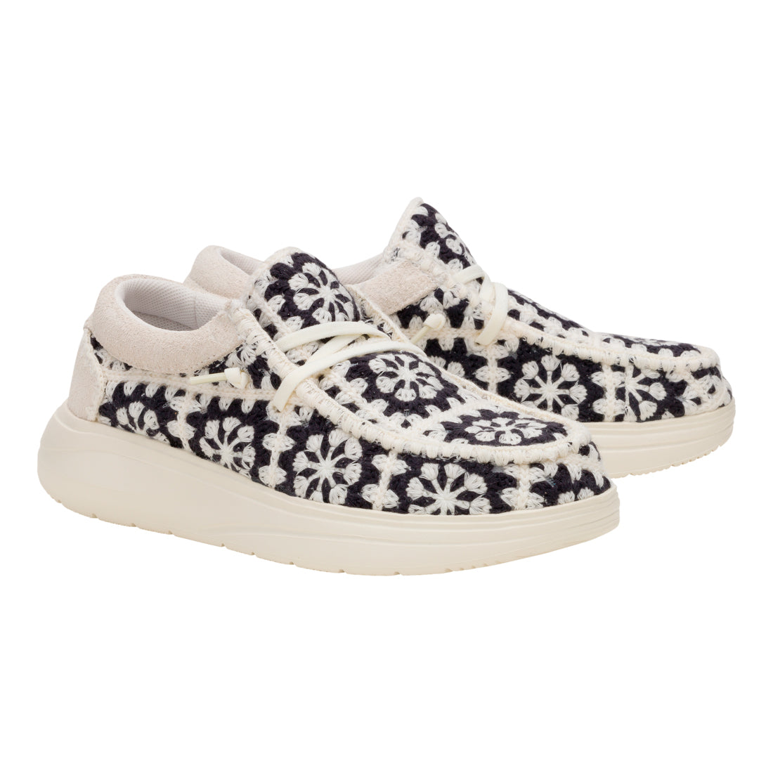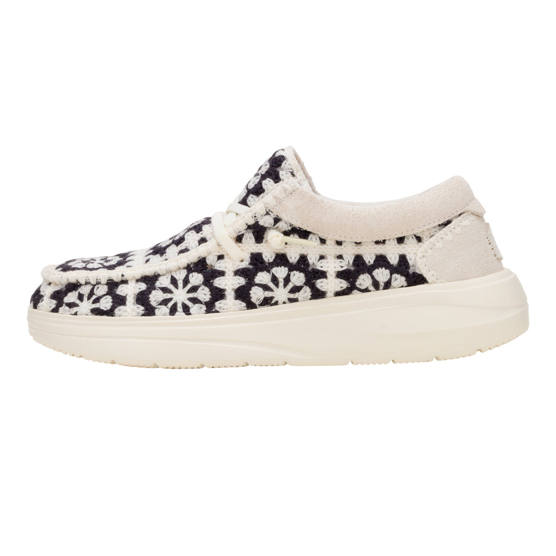 Envuélvete en comodidad y estilo con los nuevos WENDY COMF COTTAGE CROCHET. Con un lujoso cuello y talón de ante, y una parte superior de crochet bordado, estos zapatos ofrecen un toque más que elegante. La almohadilla acolchada en todo el zapato, junto con una plantilla de espuma extraíble y muy cómoda, garantiza una comodidad durante todo el día que convierte cada paso en un sueño.