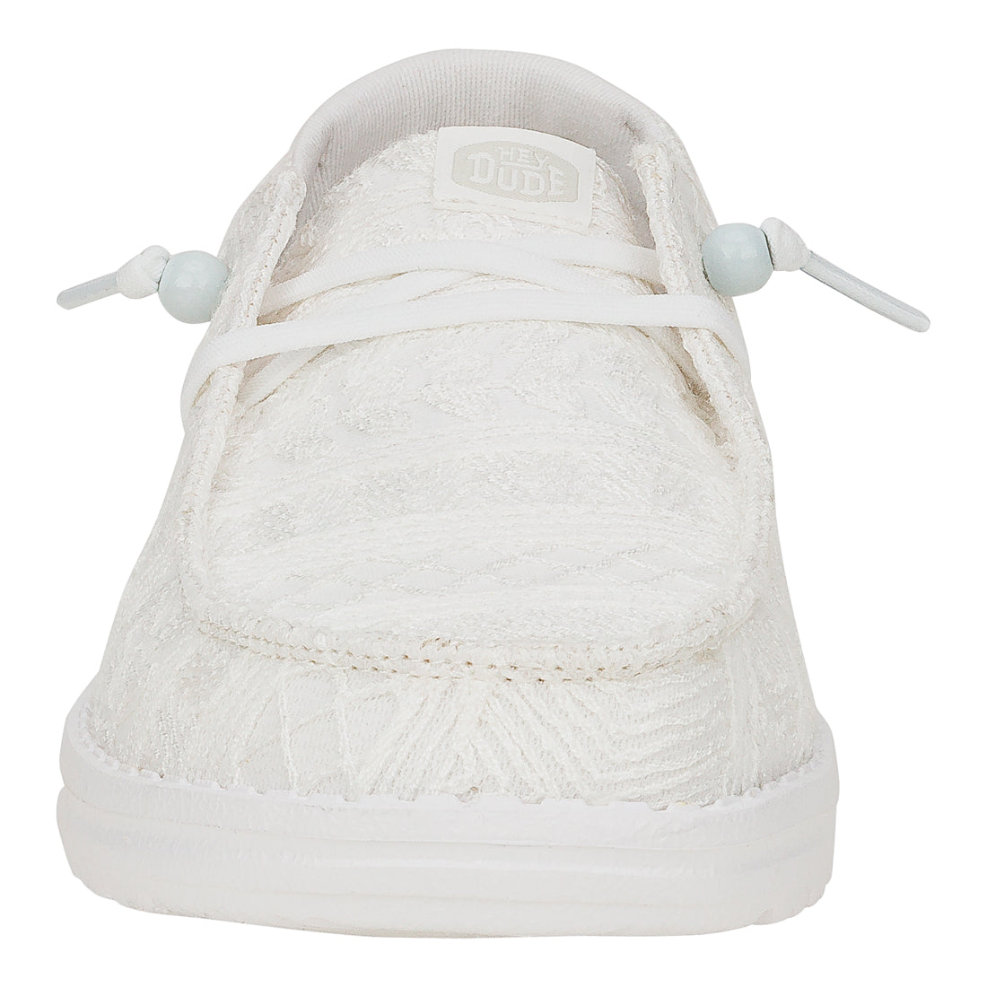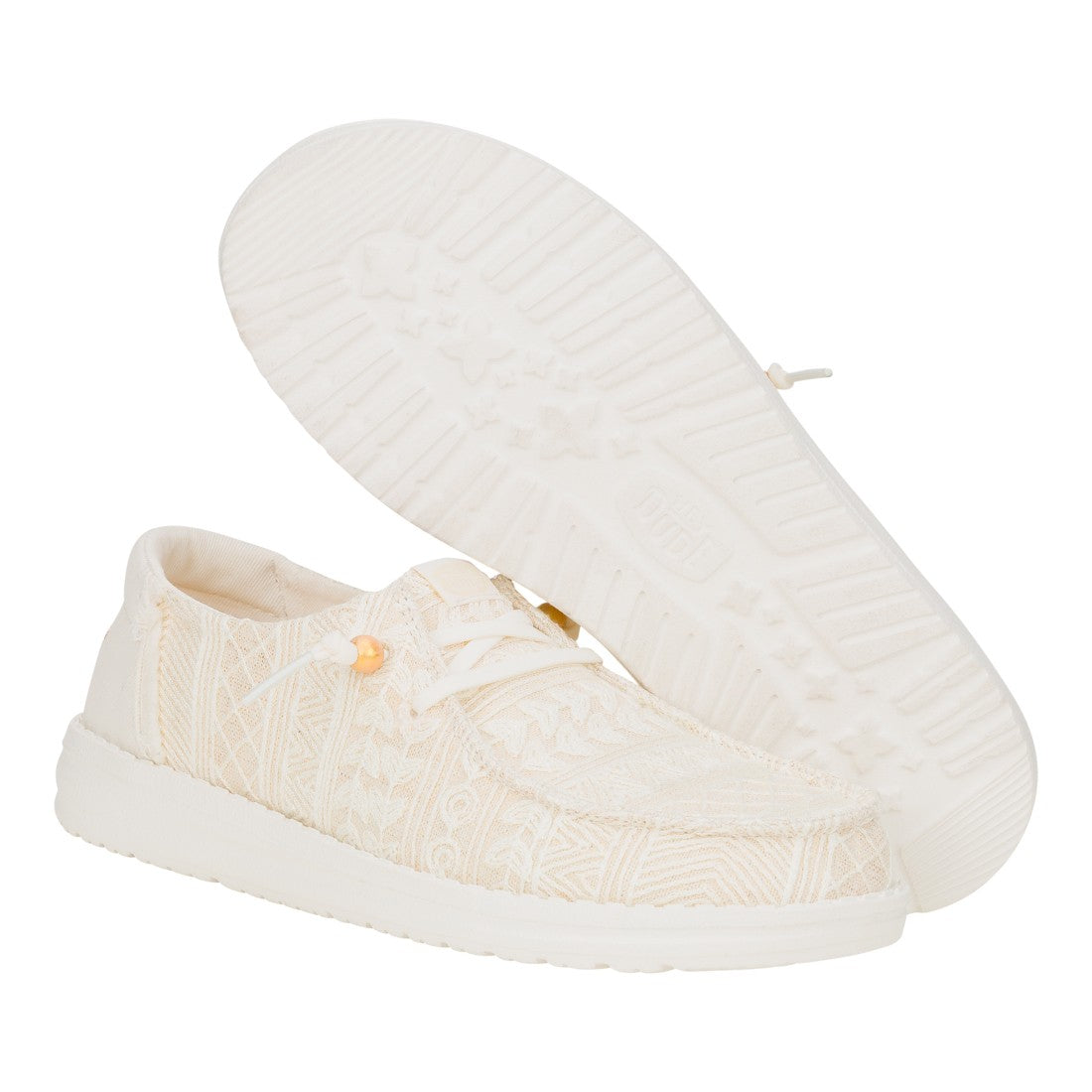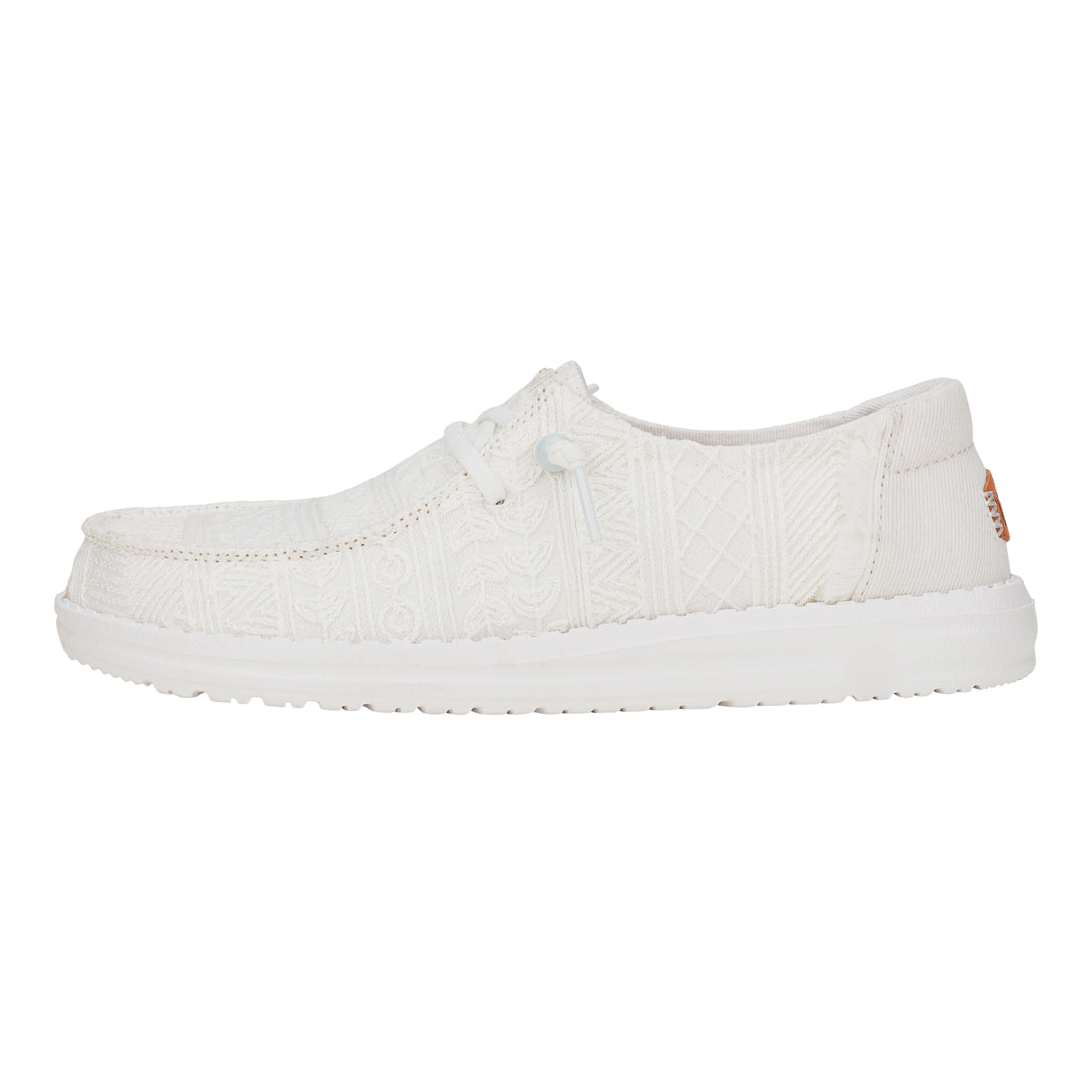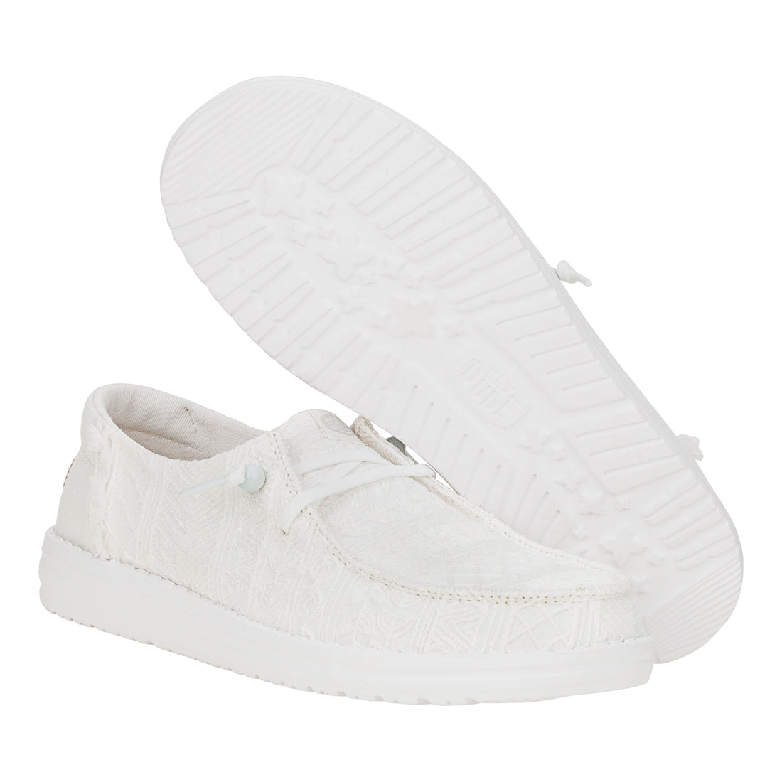 Eleva tu estilo boho chic con los WENDY CROCHET LACE. Estos coquetos zapatos combinan un fresco encaje de crochet con un toque de flecos en el talón. Póntelos sin esfuerzo, gracias a nuestro sistema de fácil colocación y sus cordones elásticos. Desde paseos por la playa hasta veladas de verano, estos zapatos se convertirán en tu mejor compañero para los días de calor.