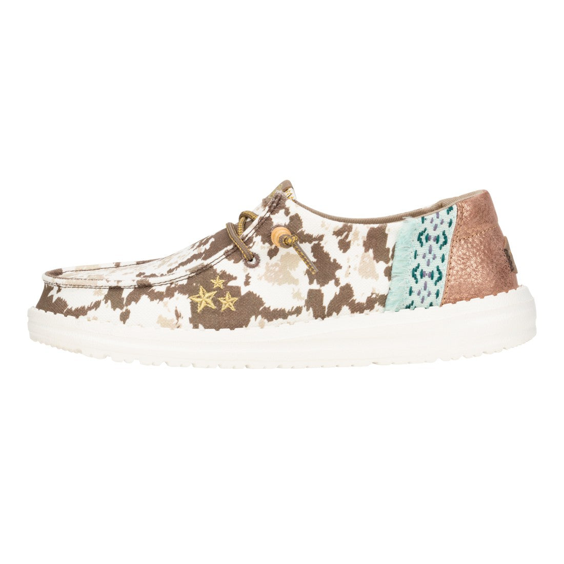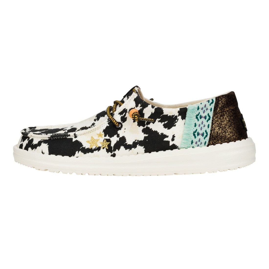 WENDY DISCO COW nos transmite vibraciones discotequeras gracias a su parte superior textil estampada combinada con detalles metalizados. Un zapato único y atrevido con el que no pasarás desapercibida. Sus principales características son: