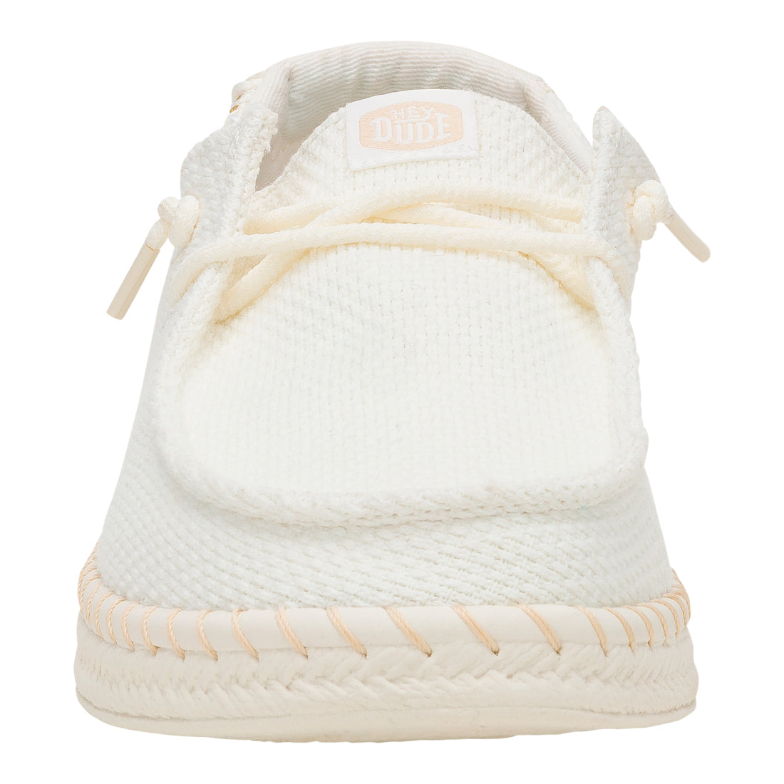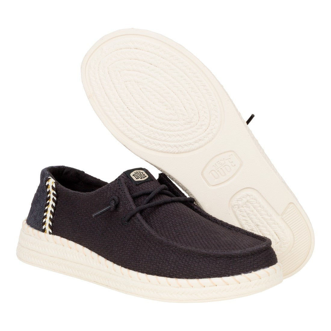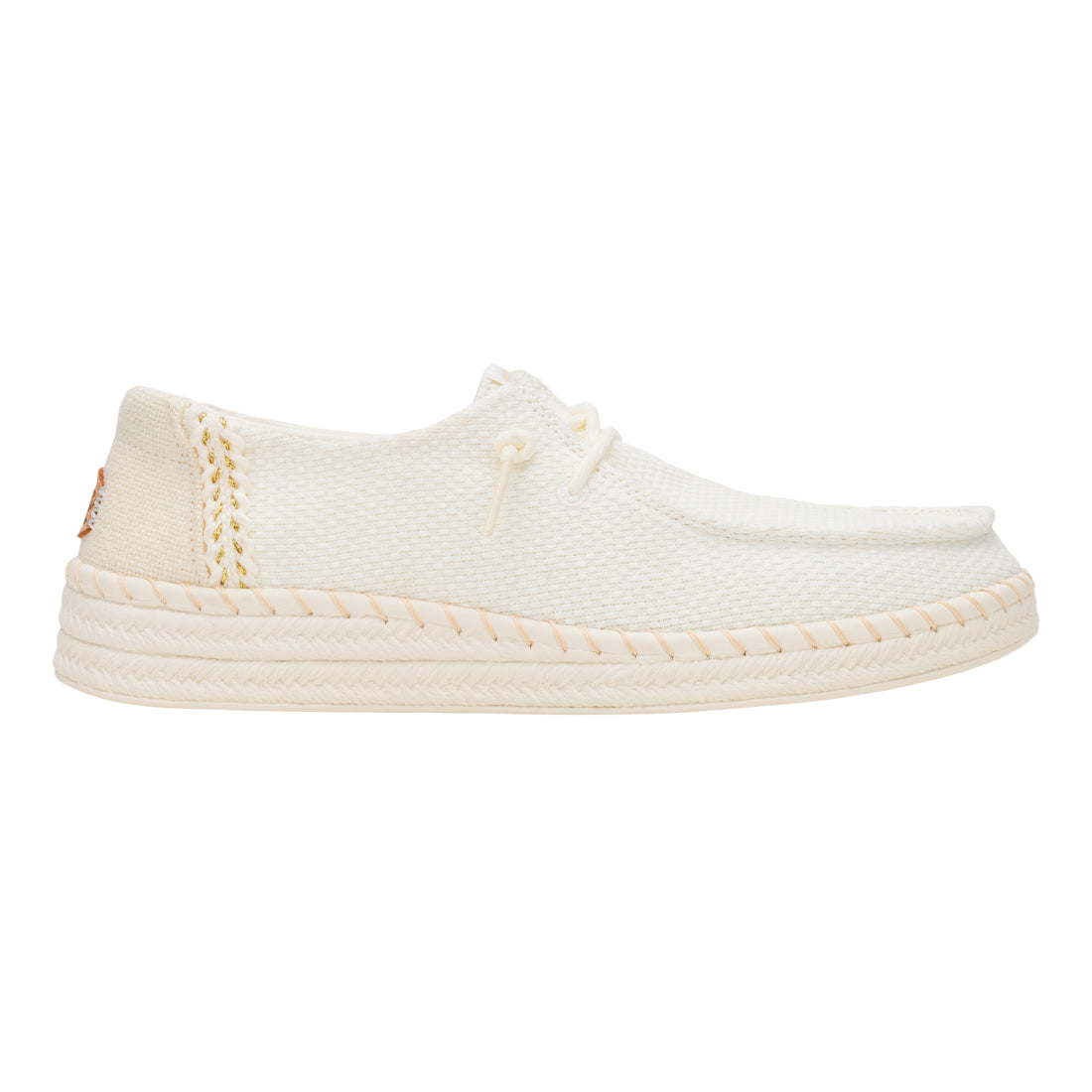 WENDY ESPADRILLE WOVEN presenta una textura de tejido y un toque divertido gracias a sus cordones con cuentas. Sus detalles bordados y la cómoda plantilla de corcho añaden un extra de confort para dar rienda suelta a tus aventuras diarias.