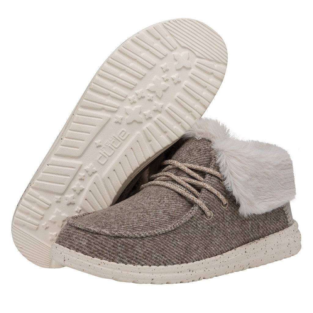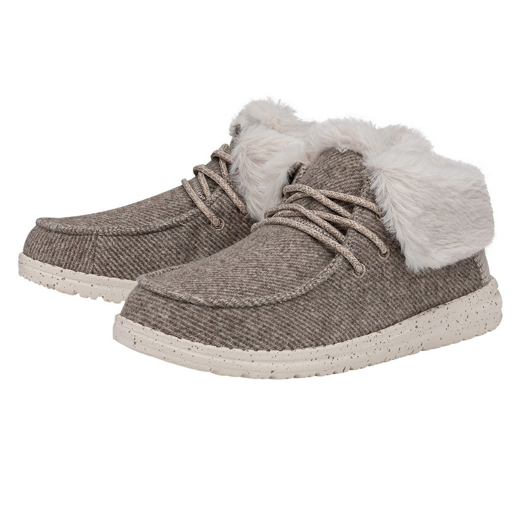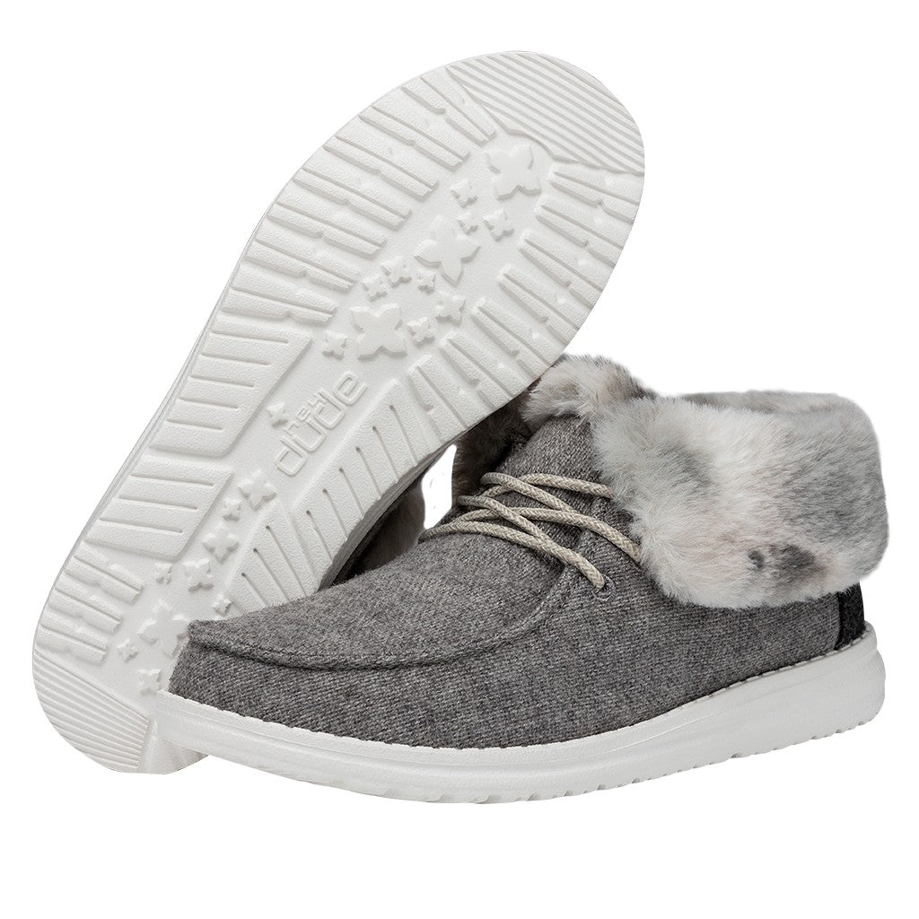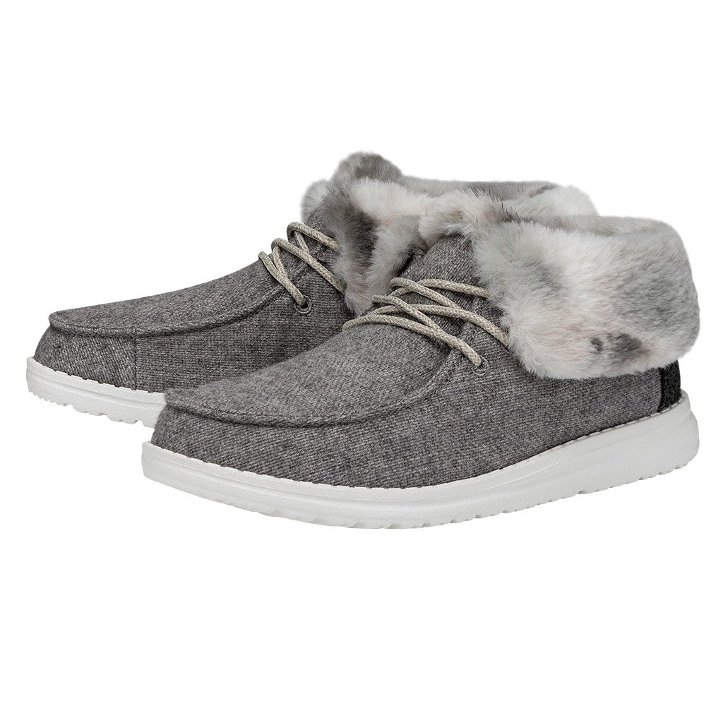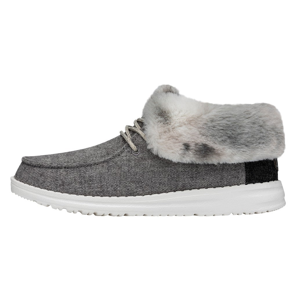 WENDY FOLD es un botín de mujer con parte superior de algodón y forro de piel sintética, perfecta para abrigar tus pies en los momentos más fríos. Su estética sigue las líneas de la WENDY clásica, con los cordones elásticos que no se atan. Sus plantillas de espuma viscoelástica agregan una capa adicional de amortiguación, dando lugar a un calzado muy ligero y cómodo. Sus principales características son: