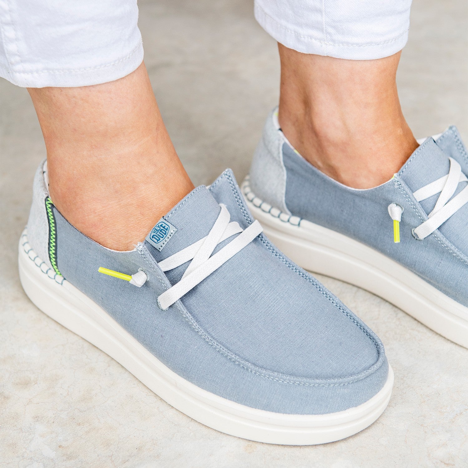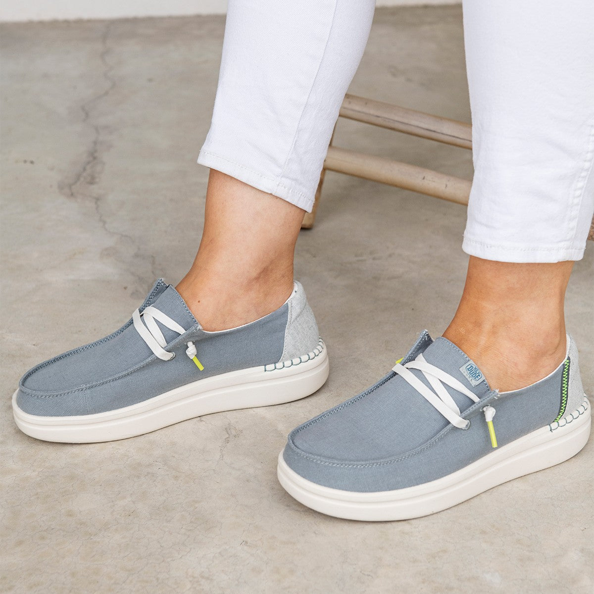 El zapato icónico de la marca adquiere un poquito de plataforma para una mayor amortiguación. Mantiene su ligereza habitual y la comodidad está asegurada gracias a nuestro sistema Easy-On y nuestra suela patentada UltraLIGHT EVA. Confeccionado en cambray suave y transpirable con colores frescos y veraniegos. Sus principales características son:
