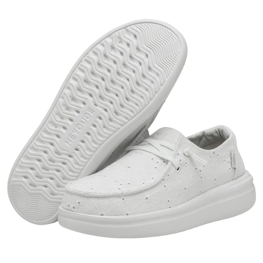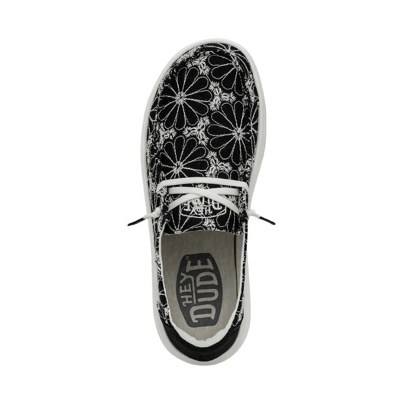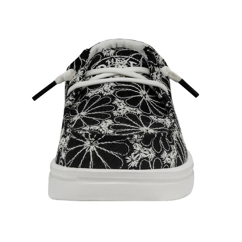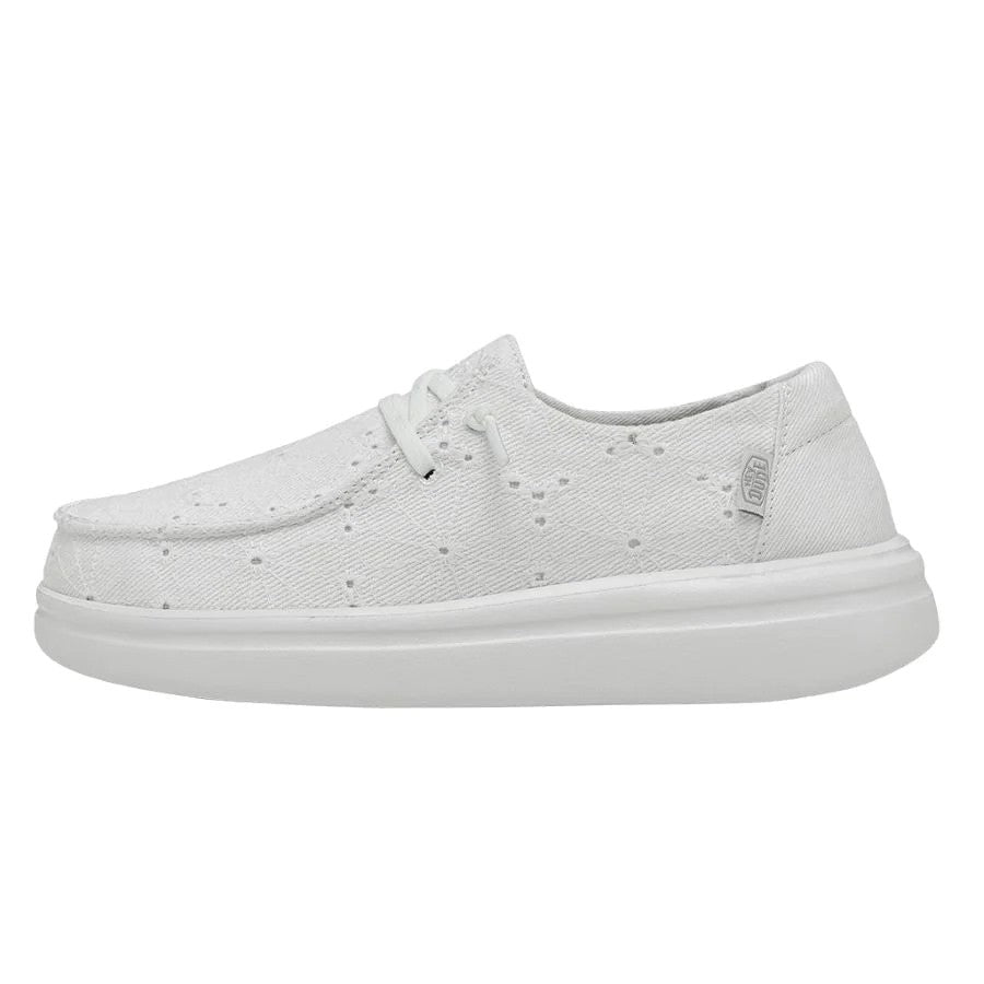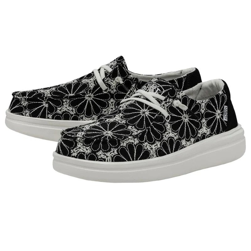 Las WENDY RISE EYELET están fabricadas con una parte superior textil ligera y SUPER transpirable, bordada con bonitos motivos florales. Sus cordones elásticos hacen que sean fáciles de poner y quitar, y sus plantillas de espuma añaden un extra de amortiguación. Todo ello sobre la clásica suela de espuma EVA con plataforma propia de la línea RISE. Sus principales características son: