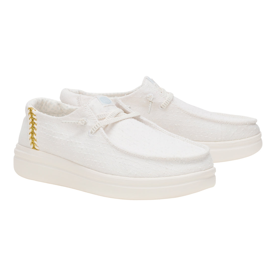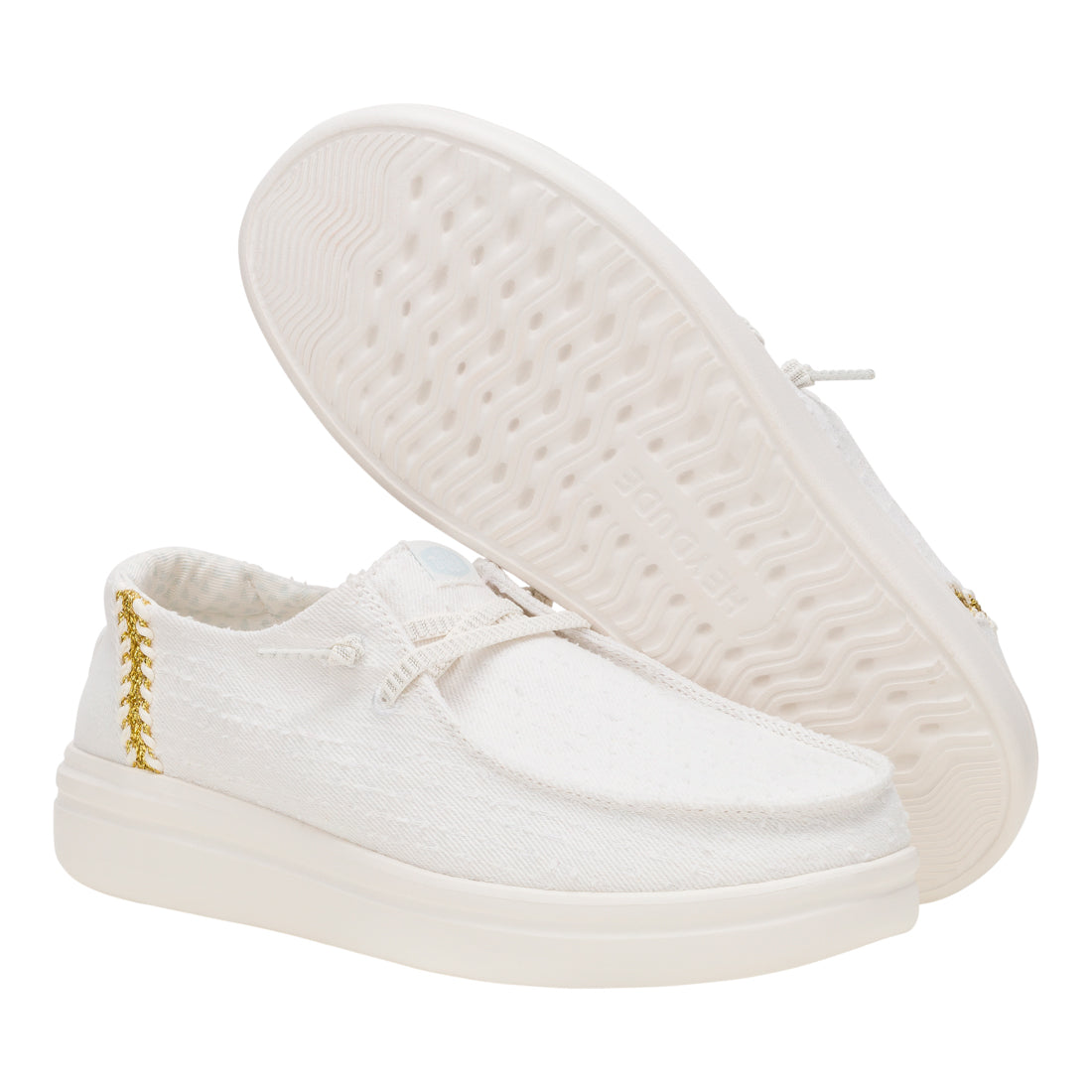 Conquista el mundo con las nuevas WENDY RISE PERF CANVAS. Unos zapatos con plataforma cuya parte superior de lona aporta frescura a todos tus looks. Los detalles bordados en el talón añaden un toque de glamour, mientras que la suela de plataforma acolchada te ofrece un extra de confort a cada paso.