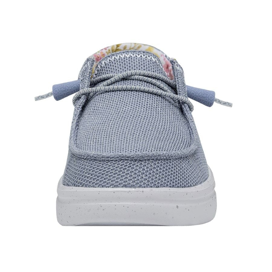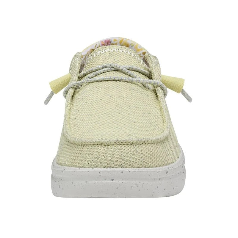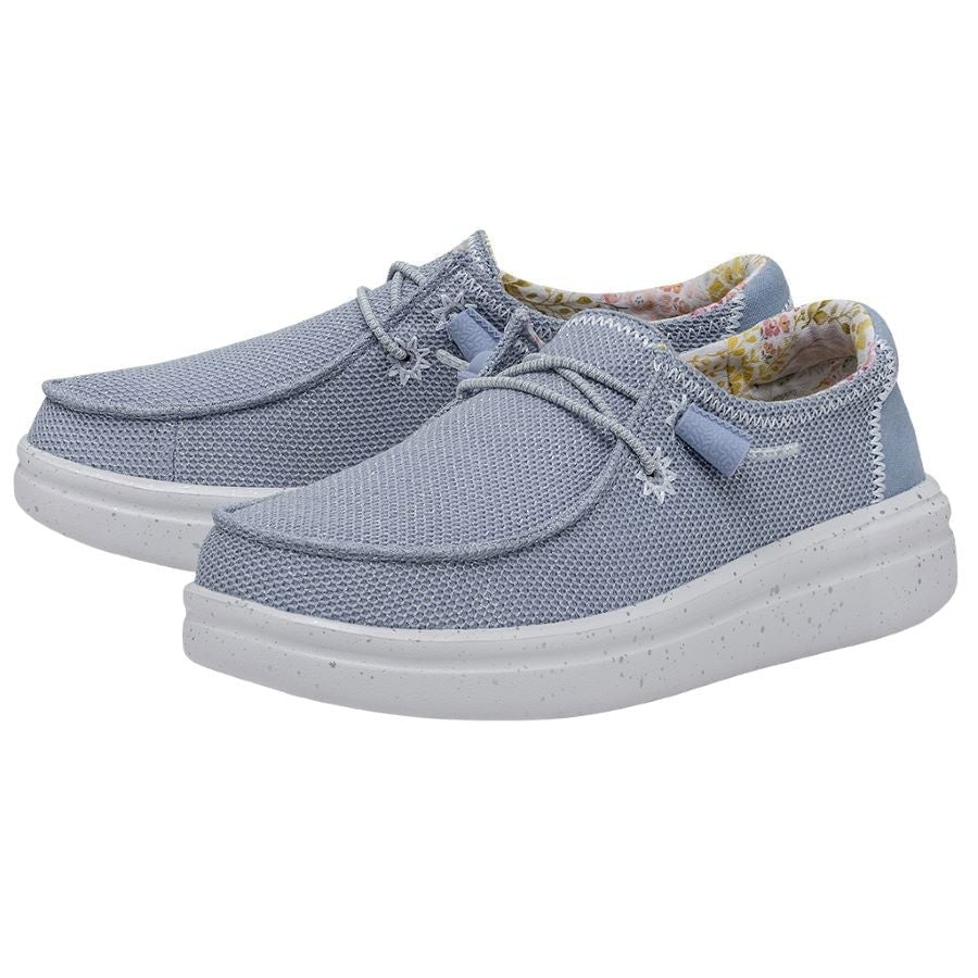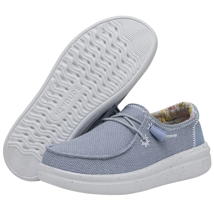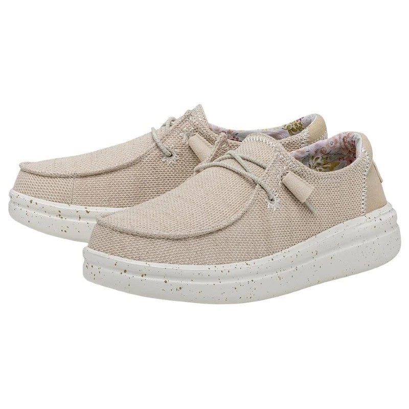 Las WENDY RISE STRETCH están fabricadas con una parte superior tejida en poliéster con textura de punto realzado por sutiles detalles bordados en sus costuras. Sus cordones elásticos facilitan el calzado y las plantillas de espuma añaden un extra de amortiguación. Todo ello sobre la clásica suela con plataforma de la línea RISE. Sus principales características son: